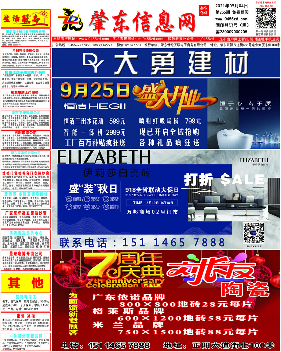 肇東信息網DM報紙2021年9月4日第255期