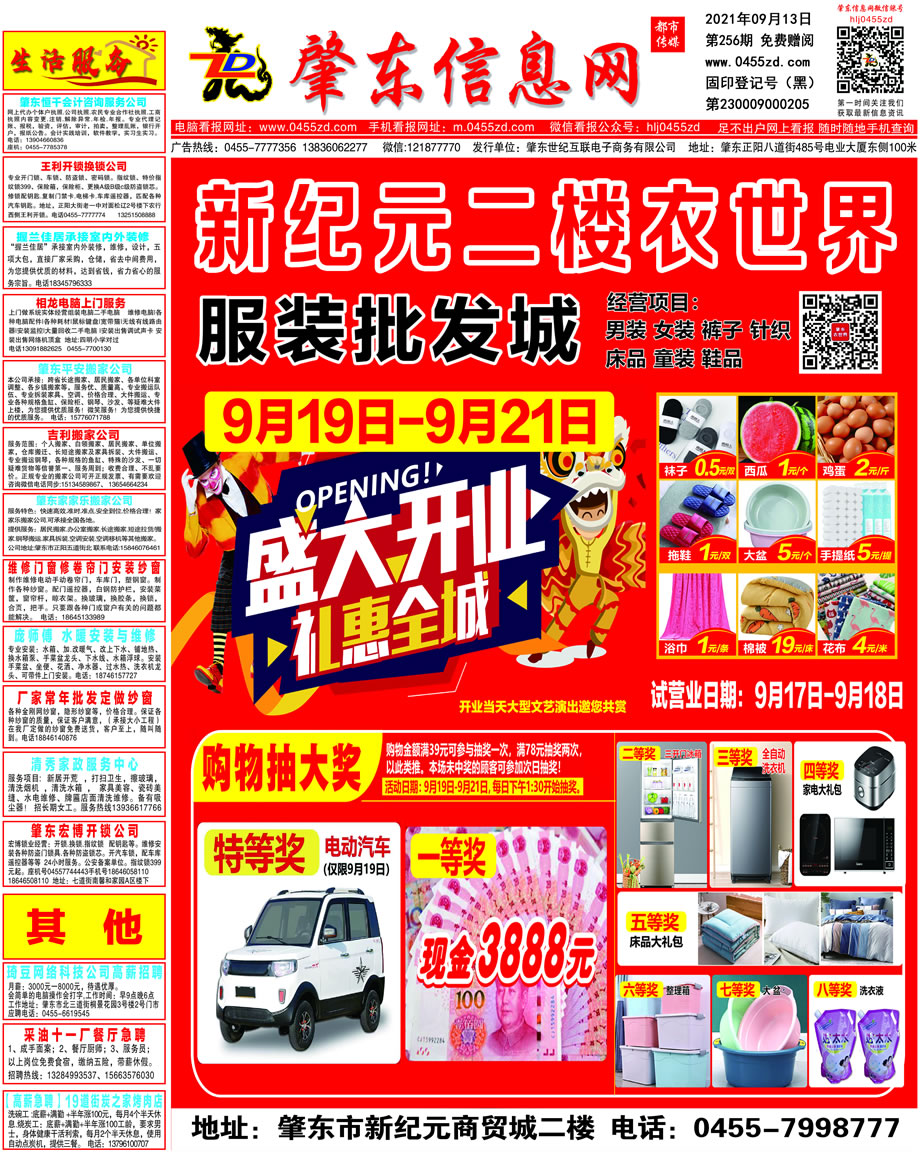 肇東信息網DM報紙2021年9月13日第256期