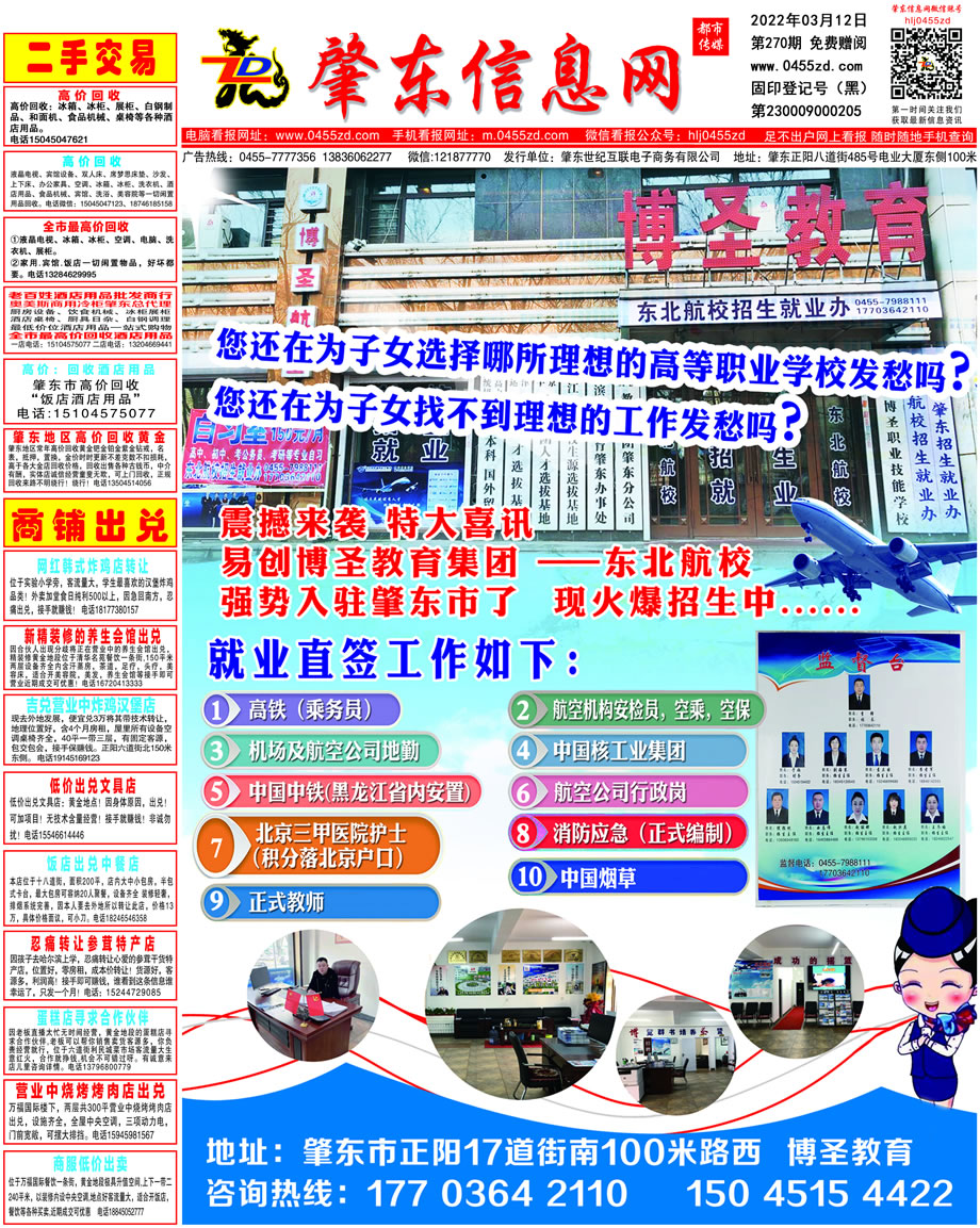 肇東信息網(wǎng)DM報(bào)紙2022年3月12日第270期