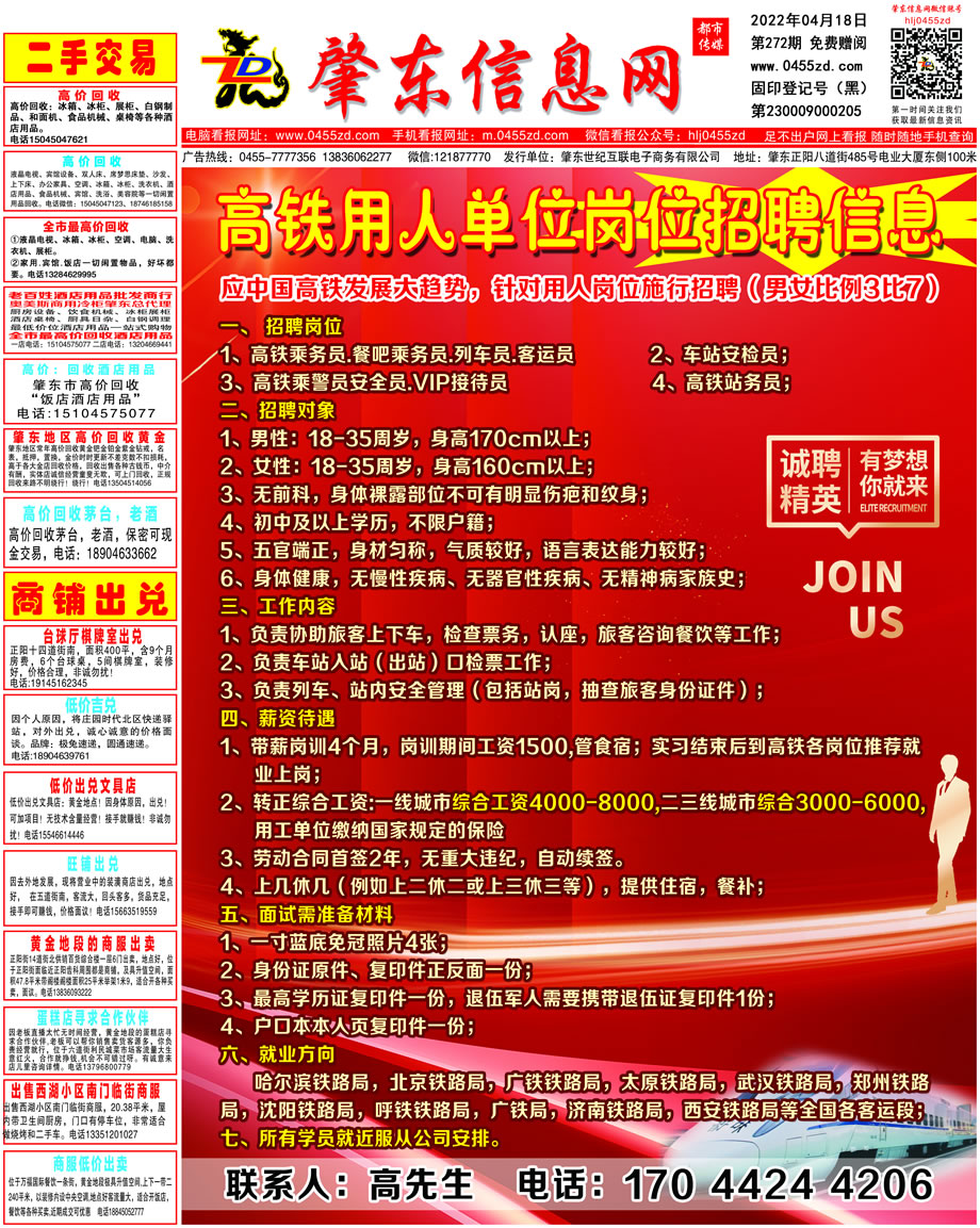 肇東信息網DM報紙2022年4月18日第272期
