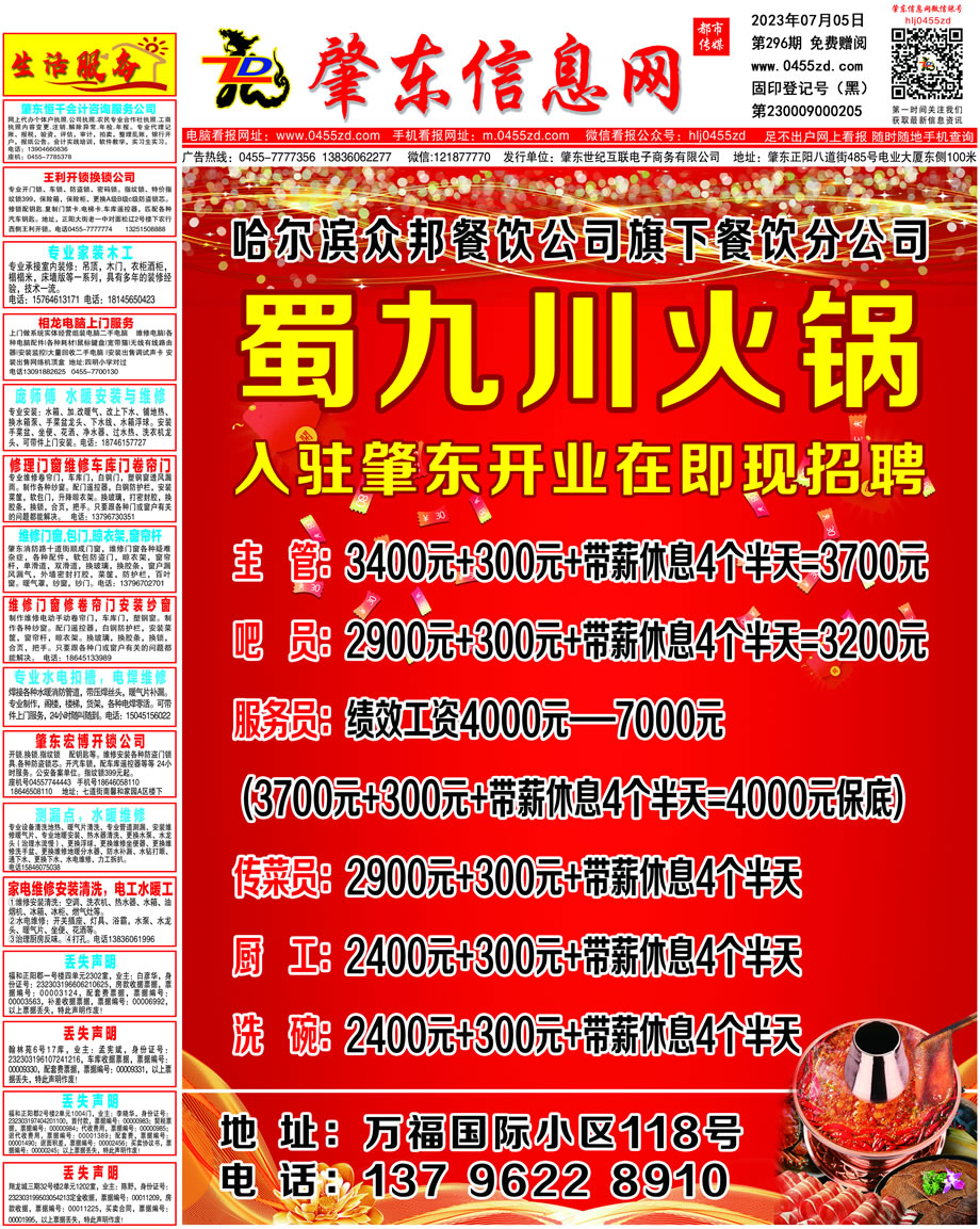 肇東信息網DM報紙2023年7月5日第296期