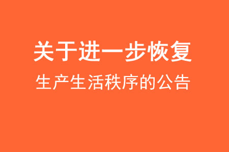 為扎實有效做好疫情防控和經濟社會發展工作,保障人民群眾身體健康和正常生產生活,現就進一步恢復正常生產生活秩序有關要求公告如下: 一、幼兒園、博物館、展覽館、文化...