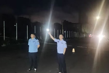 | 近日,前進派出所民警葉根、周學文出警回來途中發現四明北路一根10米高的電線桿被狂風吹倒,電纜攔在馬路中間,斷裂的電線懸在半空,過往車輛紛紛減速避讓,現場已出現交... |
