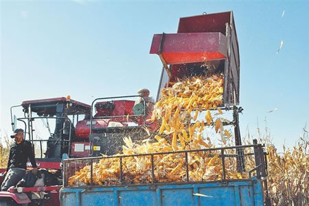 | 黑龍江日報10月25日訊 金秋十月,收獲旺季,肇東市田間地頭一片繁忙景象。在海城鎮長井村任家屯,八九臺收割機在金黃的玉米田里縱橫穿梭,緊鑼密鼓收獲著3000畝玉... |