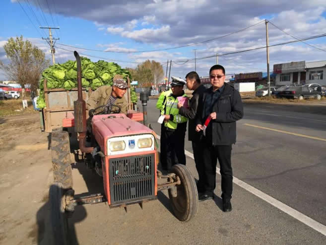 當(dāng)前正值秋收冬儲(chǔ)農(nóng)忙季節(jié),各類(lèi)農(nóng)用車(chē)、拖拉機(jī)、農(nóng)用機(jī)械上路行駛增多,農(nóng)村地區(qū)道路交通安全隱患集中顯現(xiàn)。為進(jìn)一步加強(qiáng)農(nóng)村道路交通安全管理工作,有效預(yù)防和減少道路交通事故的發(fā)生,肇東交警大隊(duì)聯(lián)合市交通執(zhí)法大隊(duì)、農(nóng)業(yè)綜合執(zhí)法大隊(duì)開(kāi)展聯(lián)勤聯(lián)治行動(dòng),緊盯城鄉(xiāng)結(jié)合部、農(nóng)村公路、鄉(xiāng)鎮(zhèn)出入口等重點(diǎn)路段,重點(diǎn)整治農(nóng)用車(chē)、拖拉機(jī)違法載人,無(wú)證無(wú)牌駕駛,酒后駕駛,面包車(chē)超員,不按規(guī)定粘貼反光標(biāo)識(shí)等交通違法行為,開(kāi)展源頭隱患治理,確保農(nóng)村地區(qū)道路交通安全形勢(shì)平穩(wěn)有序。
