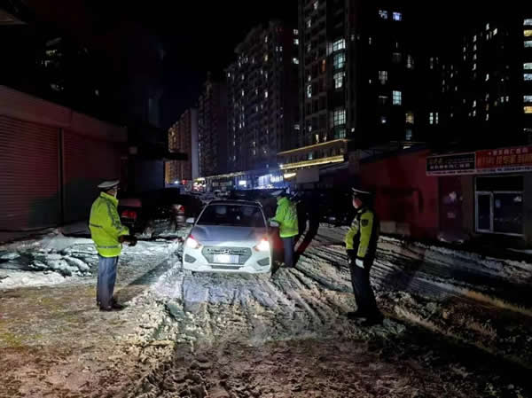 由于前一天全市普降大雪,道路結(jié)冰,酒駕等嚴(yán)重交通違法行為極易引發(fā)重大道路交通事故,交警大隊針對惡劣天氣的實(shí)際情況,采取定點(diǎn)設(shè)卡檢查和機(jī)動巡查相結(jié)合的勤務(wù)模式,將查處范圍向農(nóng)村擴(kuò)展覆蓋,巡警大隊和農(nóng)村派出所通力配合,協(xié)同作戰(zhàn)。交警大隊大隊長帶領(lǐng)班子成員到執(zhí)法一線靠前指揮,全體干警履職盡責(zé),在全市轄區(qū)路網(wǎng)布置起了嚴(yán)查酒駕違法行為的“天網(wǎng)”。