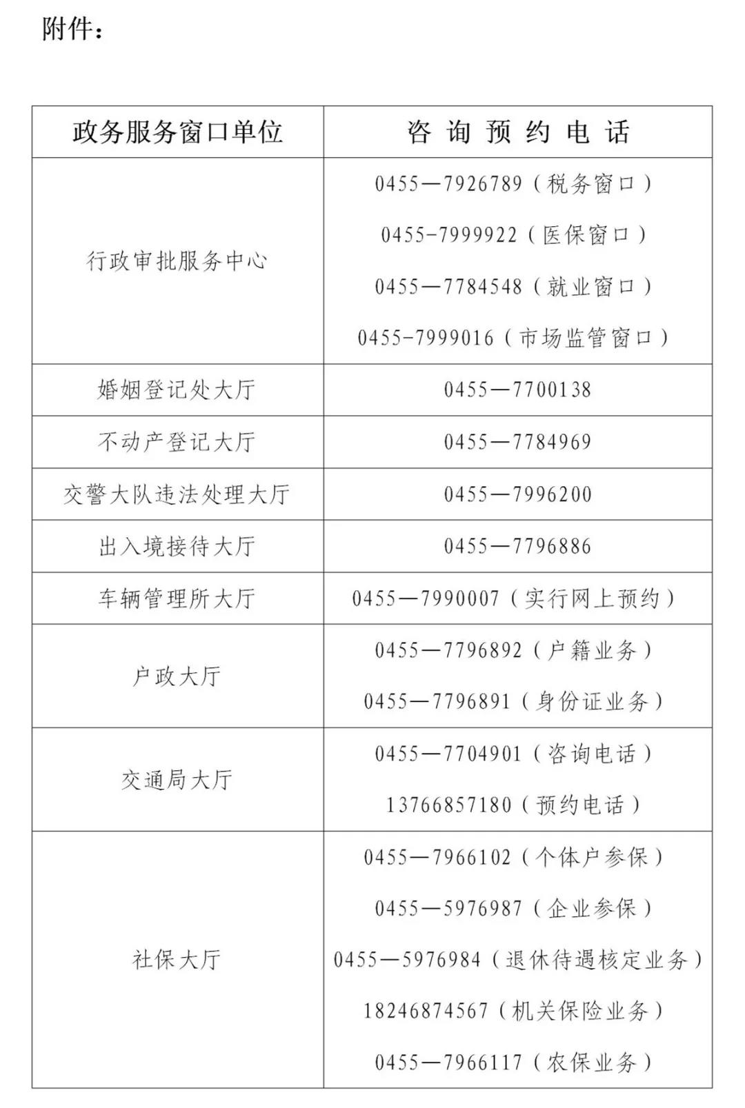 附件:政務服務窗口單位咨詢及預約電話