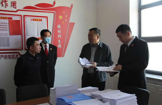 在肇東法院隊(duì)伍教育整頓領(lǐng)導(dǎo)小組辦公室檢查指導(dǎo)中, 劉昭業(yè)一行詳細(xì)聽取了黨組書記、院長王鐵軍關(guān)于隊(duì)伍教育整頓工作的匯報(bào)。仔細(xì)翻閱了我院隊(duì)伍教育整頓工作的相關(guān)材料,逐項(xiàng)查閱了隊(duì)伍教育整頓宣傳情況、學(xué)習(xí)教育日程安排、日常工作臺(tái)賬等材料,逐項(xiàng)查閱了我院隊(duì)伍教育整頓工作開展情況,并對(duì)肇東法院充分利用資源,營造向社會(huì)正面宣傳、開門搞教育整頓的濃厚氛圍給予肯定。
