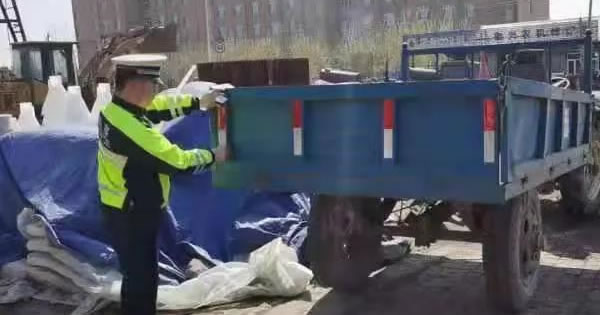 當(dāng)前正值北方春耕農(nóng)忙時節(jié),大隊針對農(nóng)機車輛出行上路頻繁,組織各勤務(wù)中隊為農(nóng)民群眾的農(nóng)機車輛、農(nóng)用機械粘貼反光標識,開展“亮尾”活動,并宣傳道路交通安全常識,最大限度消除農(nóng)機車輛源頭安全隱患,確保春耕農(nóng)忙季節(jié)廣大農(nóng)民群眾出行安全。