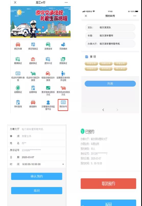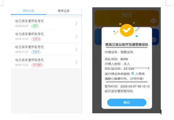 選擇【預約叫號】,如已經綁定12123用戶可直接進行預約,取消預約,瀏覽歷史記錄,取號等操作。