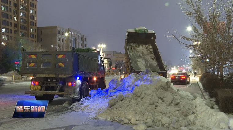 我們利用夜間車流少的有利時間段,出動大型除雪車、推雪鏟50余臺,500余名環衛工人,對城區各條街路進行清掃,清掃作業將持續24小時,確保道路暢通、市民出行安全。