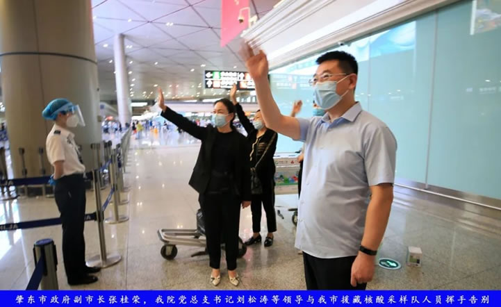 凌晨集結(jié),逆行出戰(zhàn)。2022年8月19日凌晨3:30分左右,當大家還在酣睡夢鄉(xiāng)時,我院援藏隊員阮思錦、賀妍玢、韓冰、馬越已經(jīng)帶著家人、朋友、同事的叮嚀與不舍,帶著醫(yī)務(wù)工作者的擔當與使命,在市政府集結(jié)后,便前往哈爾濱太平國際機場乘坐專機奔赴西藏,義無反顧地踏上了抗疫征程。市政府副市長張桂榮,衛(wèi)健局黨組書記王琦,衛(wèi)健局副局長初哲,衛(wèi)健局黨組成員趙芳,我院黨總支書記劉松濤,第一醫(yī)院黨總支書記呂哲及職工代表為我市援藏核酸采樣隊送行。