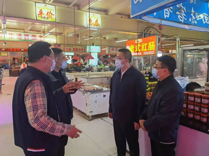 8月29日,肇東市副市長單奎同志到市場領域檢查疫情防控情況,在市場監督管理局副局長喬福成同志的陪同下,對各市場業態進行了全面檢查。