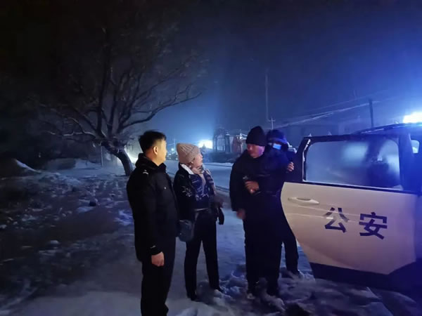 3月14日晚9時(shí)許,天空飄著鵝毛般的大雪,安民派出所接到群眾報(bào)警稱:“在安民鄉(xiāng)安民村李家圍子屯,301國道東側(cè),有一名頭戴黑色帽子,身穿黑色棉服和黑色褲子的男子,不知道什么原因躺在路邊”,接到報(bào)警后,民警楊忠孝立即帶領(lǐng)輔警張興宇趕赴報(bào)警現(xiàn)場(chǎng),經(jīng)過現(xiàn)場(chǎng)了解,發(fā)現(xiàn)該人為智障人員,無法準(zhǔn)確有效地表達(dá)個(gè)人信息,且身上也沒有任何能證明身份信息的證件,具體住址也說不清楚。只能斷斷續(xù)續(xù)的表達(dá)自己和母親的名字,但無法提供聯(lián)系方式,經(jīng)過民警再三溝通,他說是在廣場(chǎng)上扭秧歌,扭完后想回家,在經(jīng)過一個(gè)天橋后,迷失了方向,就走到這來了。民警楊忠孝分析,該人應(yīng)該是從市區(qū)來的,因?yàn)樗岬教鞓颍裁袼爡^(qū)最近的城市就是安達(dá)市,他應(yīng)該是從安達(dá)市方向來的,將群眾領(lǐng)到安民派出所后,輔警張興宇為他買了熱乎的食物并安撫其情緒,通過工作得知該人叫郭某東是安達(dá)市朝陽區(qū)居民,楊忠孝立即與安達(dá)市朝陽派出所取得聯(lián)系,安達(dá)市朝陽派出所工作人員表示,郭某東的父母已向派出所報(bào)警,說孩子已走失一下午了,父母很著急,我們這邊也出動(dòng)警力正在幫忙尋找,民警楊忠孝與他的父母取得聯(lián)系后,告知人已安全找到,看著天空飄下的大雪,楊忠孝決定和張興宇用警車把郭某東安全送回家里,以免發(fā)生其他意外。
