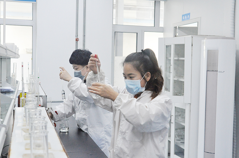 3月27日,肇東星湖生物科技有限公司技術工人在化驗室檢測產品。