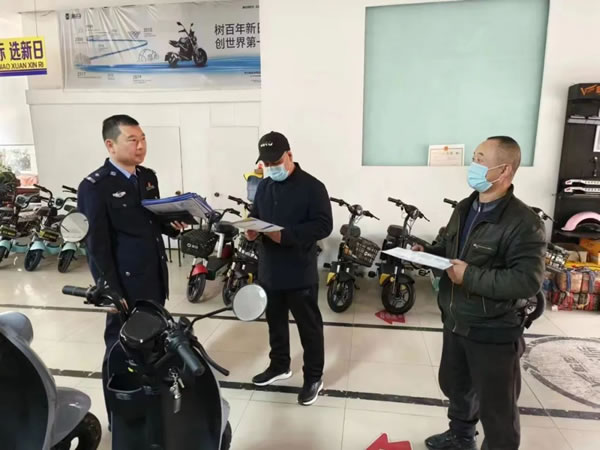 在經銷商鋪,民警對電動車經銷商應履行的責任、義務和消費者享有的權利等方面,對《黑龍江省電動車管理條例》進行了詳細解讀,要求各電動車經銷商在銷售電動車時必須依法向消費者提供購車發票、產品合格證,并告知產品特征,從銷售環節上杜絕違規電動車上路行駛。