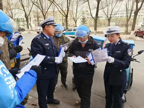 在快遞外賣企業及人員聚集場所,民警以發放宣傳資料、粘貼《黑龍江省電動車管理條例》宣傳單等方式,詳細講解電動車的種類、認定標準、電動車登記程序等通行規定。提醒廣大群眾在騎乘電動車時要正確佩戴合格的安全頭盔,杜絕闖紅燈、逆向行駛、酒后駕駛等各類交通違法行為。引領廣大群眾遵守電動車通行規定,摒棄交通陋習,做到守法規知禮讓,安全文明出行。