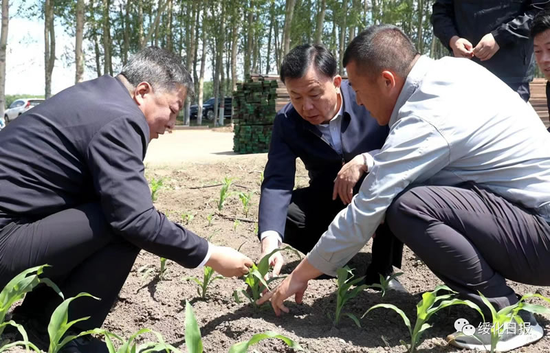 張寶偉首先來到五里明鎮東升村示范田現場,與肇東市、相關部門和農機合作社負責同志交流,詳細了解玉米大壟雙行、土地流轉、糧食產量等情況,對合作社與中國農業大學在技術合作,提高糧食產量等方面給予充分肯定。他強調,要深入學習習近平總書記關于“三農”工作的重要論述,落實好國家新一輪千億斤糧食產能提升行動要求,加快實施高標準農田建設,大力發展科技農業、綠色農業、質量農業、品牌農業,堅持走好科技種田助農增效路子。要強化示范引領,突出典型帶動,通過良田、良種、良法、良機、良制推進全市糧食高產高效,努力爭當農業現代化建設排頭兵。