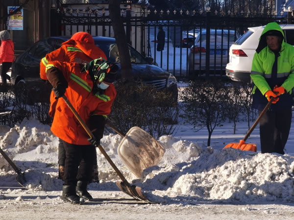 目前城區(qū)主干路已經(jīng)露出了黑色的路面,積雪外運工作正在持續(xù)推進中。但由于此次降雪持續(xù)時間長,降雪量大,為了有效配合機械化清雪作業(yè),近七百名環(huán)衛(wèi)工人在肇東市主干路進行加班加點作業(yè),保證道路安全暢通。