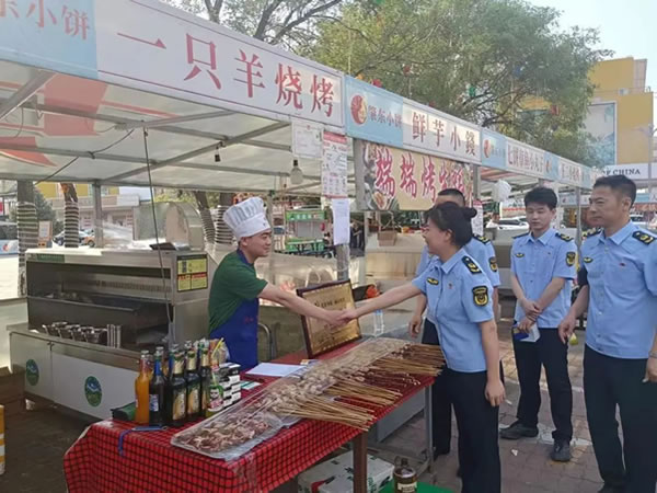 肇東市市場監管局把證照辦理窗口設在在肇東市影劇中心“小餅節”現場,打通“最后一公里”,對報名參加小餅節的無證照個體經營戶開辟綠色通道,采取現場申請,即時審批的方式發放證照。