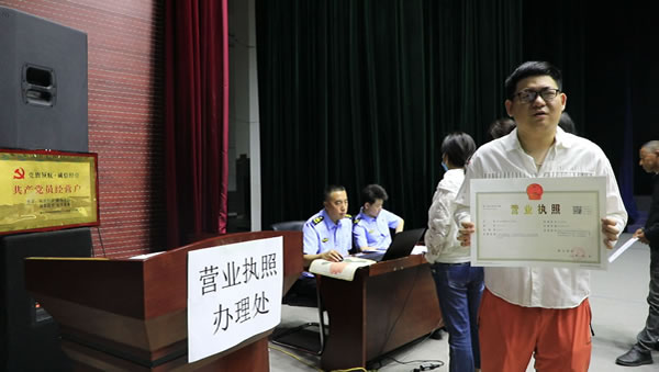 走訪后,針對即將大量集中出現的辦證辦照需求。肇東市市場監督管理局為助推“小餅節”獻上一盤“好菜”,進一步靠前服務,為經營者“送服務上門”,在現場辦理營業執照。