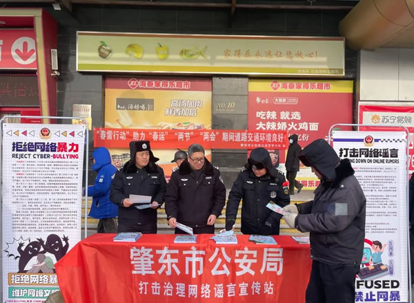 為深入推進(jìn)打擊整治網(wǎng)絡(luò)謠言專項(xiàng)行動(dòng),營(yíng)造良好的社會(huì)輿論氛圍,提升廣大群眾對(duì)網(wǎng)絡(luò)謠言的辨別能力。1月30日,肇東市公安局網(wǎng)安大隊(duì)聯(lián)合公共關(guān)系大隊(duì)采取多種形式的網(wǎng)絡(luò)謠言打擊整治專題宣傳活動(dòng)。