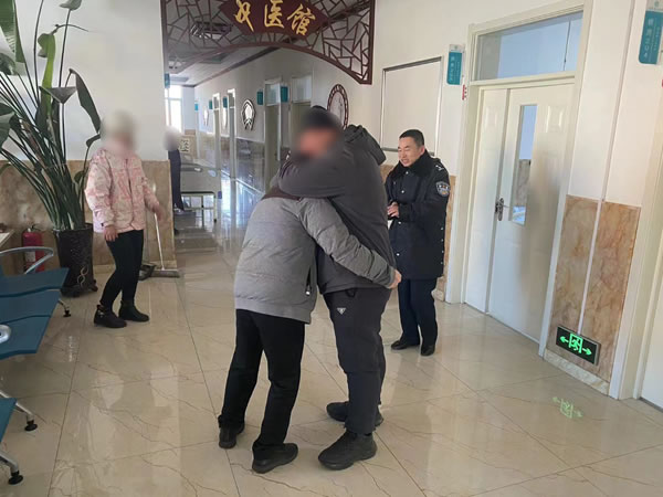 2月26日早上7時許,五站派出所值班民警接五站鎮東安村村民安某報警稱,在五站鎮東安村道口發現一人躺在路邊溝里,生死不明。民警立即出警,在五站鎮301國道與東安村路交叉口南側溝里發現一女子躺在樹下,經詢問該人神志清醒,生命體征尚好,但由于受凍時間較久,無法說明姓名、地址及家人情況,手機關機狀態,民警立即將該女子送往五站鎮衛生院緊急救治。隨即民警通過僅有的信息查詢到該女子名叫呂某軍,戶籍地址為五大連池市四平鄉某村居民。民警聯系到其父親呂某利,呂某利稱女兒患有抑郁癥,于2024年2月25日走失,全家人正在四處尋找呂某,正不知所措時接到民警電話,呂某利和女子丈夫王某看到呂某安然無恙,已經脫離險境時,不勝感激,抱頭痛哭。家人對民警的救助行為表示萬分感謝,并表示將在今后加強關心照顧,避免再次走失,隨即該女子被其家人接回。