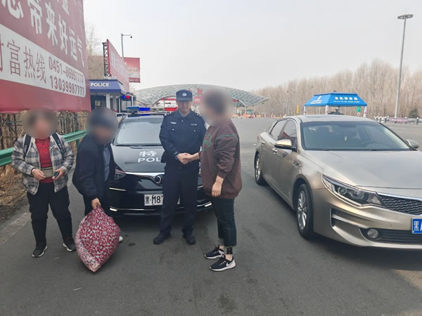 隨后,巡特警隊員將走失人員董某送到哈大高速哈爾濱收費站出口處,董某與家屬團(tuán)聚,家屬看到董某被肇東警察找到了,激動的握著巡特警隊員的手連連道謝。