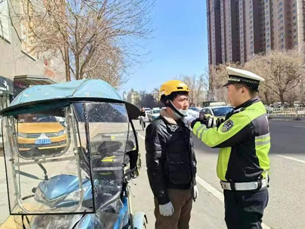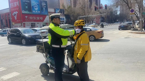 行動中,交通民輔警在城區電動車、摩托車通行集中路段,對摩托車、電動車逐輛進行檢查,對未正確佩戴安全頭盔的騎乘人員,現場講解正確佩戴頭盔的方法及佩戴頭盔的重要性和必要性。對未佩戴安全頭盔的騎乘人員進行教育、警告。并當面宣講交通安全法律法規等安全知識,詳細剖析駕乘電動車、摩托車不佩戴安全頭盔的嚴重危害和后果。尤其針對外賣、快遞等配送人員,民輔警在街頭逐一檢查車輛運行手續和安全性能、頭盔是否符合國家標準等情況,明確要求快遞配送人員必須發揮重點行業示范引領作用,時刻戴好安全頭盔,遵守交通法規,做好交通安全的帶頭人。