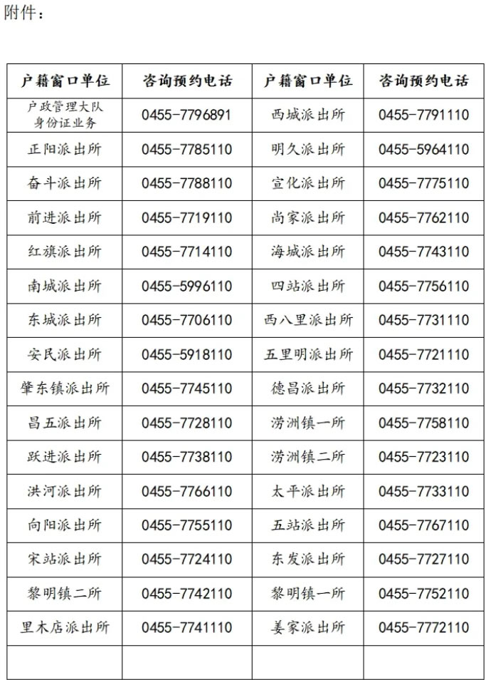 附件:公安機關戶籍窗口單位咨詢及預約電話