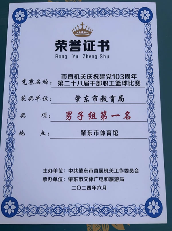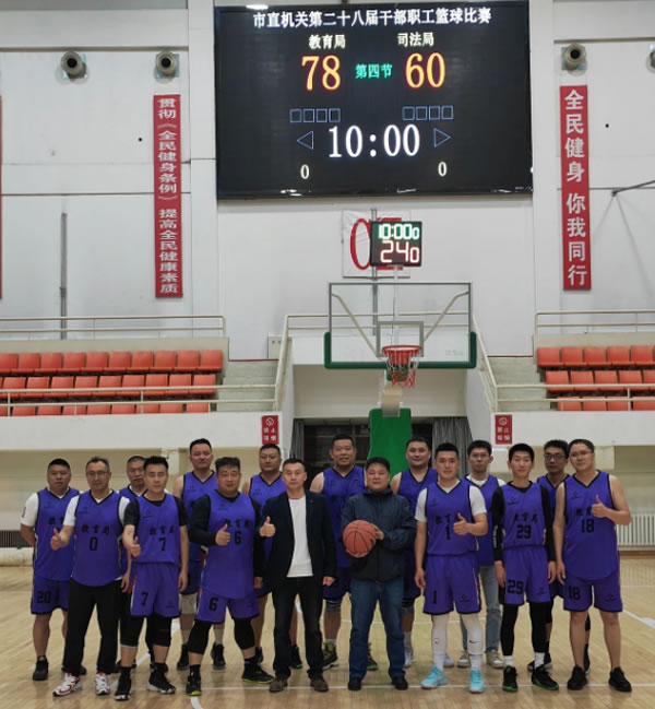 在6月15日-22日我市市直機(jī)關(guān)工委舉辦的“慶祝中國共產(chǎn)黨成立103周年第二十八屆干部職工籃球比賽”中,教育局代表隊(duì)一路過關(guān)斬將,獲得市直男子組第一名的佳績。