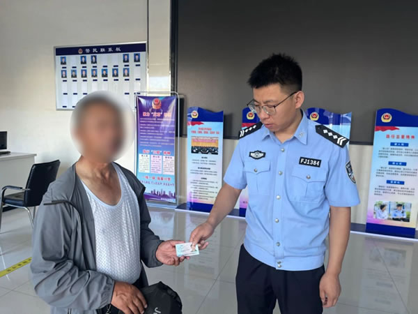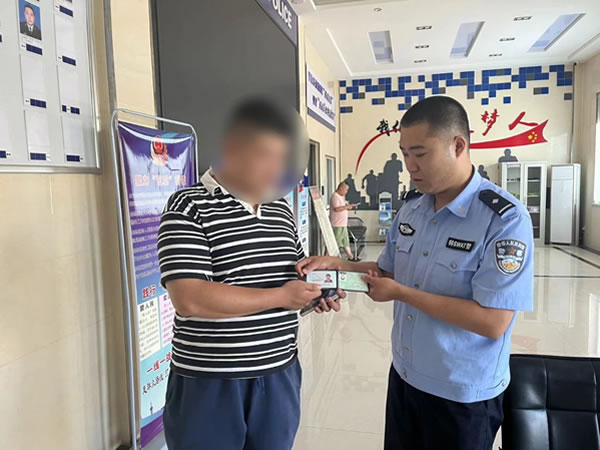 “警察同志,我撿到一個身份證,你們幫忙聯系一下失主吧,我這也聯系不上啊。”8月8日,一居民在利民城附近撿到一張身份證,并將證件送到轄區南城派出所。值班民警王鑫立即查看身份證,得知失主是戶籍地在太平鄉的居民王某山,根據身份信息進行查詢,在得到有效聯系方式后,民警迅速撥通電話與失主取得聯系,告知其身份證已被熱心群眾撿到,不要著急,可以隨時到派出所來認領,并告訴其派出所的詳細地址。