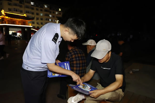 民警利用夜間群眾休閑納涼的有利時(shí)機(jī),通過(guò)集中宣傳和定點(diǎn)講解等方式,提醒群眾增強(qiáng)安全防范意識(shí)。同時(shí),充分發(fā)揮社區(qū)群眾聚集多、消息傳播快、宣傳精度高優(yōu)勢(shì),發(fā)放宣傳資料把“五防”知識(shí)送上門(mén)、讓安全知識(shí)深入人心。