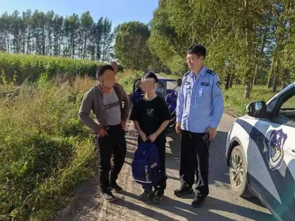9月7日15時,肇東鎮派出所的民警在日常巡邏至實理村3組草原附近時,發現一名走失兒童。經耐心詢問,得知該兒童名叫劉某鑫,現年12歲,家住肇東市某小區。孩子在草原玩耍時因迷失方向,無法找到回家的路,身上未攜帶手機,也無法聯系到家人。