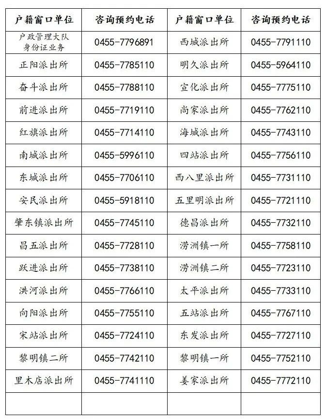 附件:公安機關戶籍窗口單位咨詢及預約電話