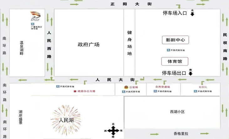 2.開放10處停車場:檢察院、國土局、公安局、體育館、影劇中心、廣電中心、交警大隊、房產處、農村信用社、人壽保險公司院內停車場。黨政中心院內停車場車輛可在大樓北側停放,禁止車輛進入大樓東西兩側及南側。社會車輛要服從現場工作人員指揮,就近在停車場內有序停放。