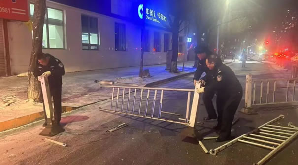 1月28日除夕當天,肇東市迎來大范圍低溫降雪,低溫降雪導致城區路段有結冰現象發生,過往車輛時常發生打滑失控,撞上馬路中間的護欄,變形、倒地的破損護欄嚴重影響車輛及群眾的出行安全。肇東市公安局奮斗派出所民輔警巡邏至八道街建設銀行路口時,發現路口中間的隔離護欄被撞壞,過往車輛紛紛避讓,影響正常的道路通行,加之天黑,稍不留神,極易造成安全事故,存在很大的安全隱患。見此情景,民警劉長軍、吳復生、王海瑩、輔警邵建壹迅速來到事發現場,及時將撞壞的護欄扶正擺好,把護欄移至原位,同時指揮過往車輛完全通行。經過民警二十多分鐘的精心維護,終于把斷裂護欄修好歸位,保證了車輛行人的通行安全,受到了過往司機朋友的點贊。