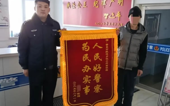 李老漢對失而復(fù)得的牛感動的拉著工作人員受傷的手說“太感謝民警同志了,沒有你們我這個年都過不好”。第二天,李老漢特意制作一面“人民好警察,為民辦實事”的錦旗送到躍進(jìn)派出所輔警高明楊手中。