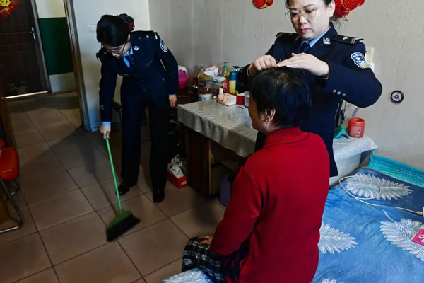 3月5日,奮斗派出所黨員民輔警深入轄區養老機構開展志愿服務活動。期間,民輔警為老人帶去水果、牛奶等慰問品,并與老人嘮家常,耐心傾聽他們的心聲,還幫助老人整理衣物、打掃衛生,用行動傳遞愛心,用善舉傳承美德,一句句溫馨的話語、一聲聲貼心的問候,讓老人們倍感溫暖。
