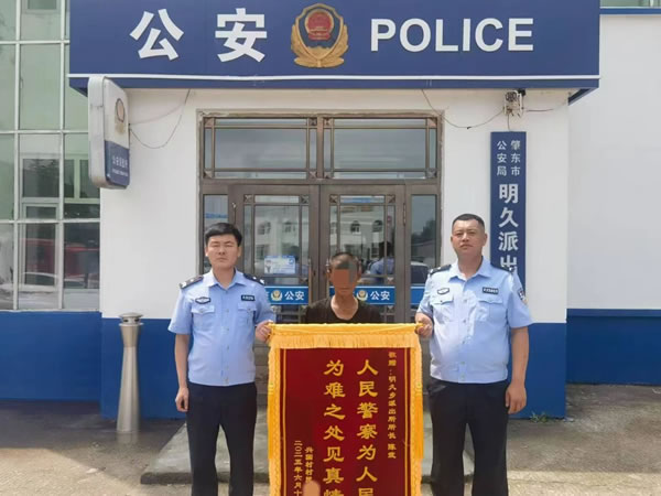 看到孫子平安歸來,紀(jì)先生眼含淚花不停地向民警道謝:“感謝警察同志幫我找回孩子,謝謝你們,謝謝你們!”6月15日,紀(jì)先生專門將一面印有“人民警察為人民,為難之處見真情”的錦旗送到明久鄉(xiāng)派出所,表達(dá)對民警的感激之情。