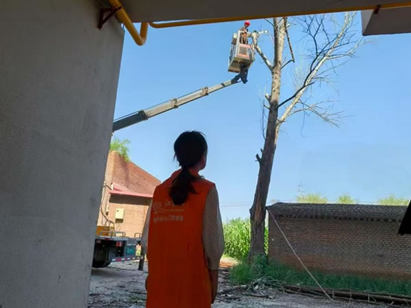在伐樹當(dāng)天,東升民政服務(wù)站社工也早早來(lái)到現(xiàn)場(chǎng),疏導(dǎo)枯樹附近停放的車輛,引導(dǎo)居民有序繞行。經(jīng)過(guò)專業(yè)人員兩個(gè)多小時(shí)的緊張工作,最終,枯萎樹木被逐一伐倒,危險(xiǎn)樹枝全部清理完畢,此處安全隱患得以排除。