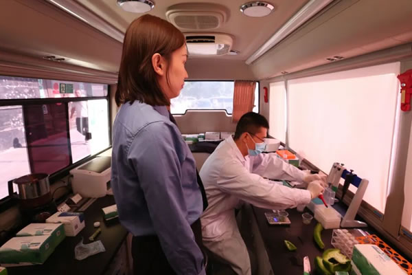 在快速檢測服務環節,市場監管人員現場對消費者剛購買的蔬菜、水果等農產品進行農藥殘留等項目免費快檢,讓消費者"零距離"感受食品安全保障,增強了消費信心。