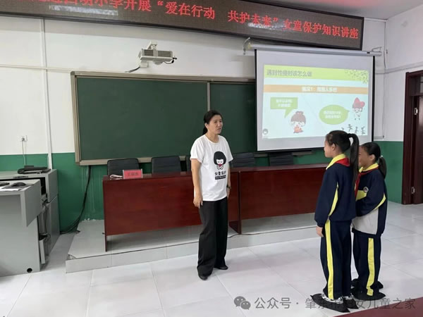 講座中,王麗東老師憑借豐富的兒童保護經驗和專業知識,以孩子們易于理解和接受的方式展開授課。她通過趣味十足的互動問答、貼近生活的案例講解,向孩子們清晰地講解了身體隱私部位的相關知識,教孩子們如何辨別身邊潛在的安全風險,以及遇到危險時該如何正確應對、及時求助。課堂上,孩子們積極踴躍地參與互動,認真傾聽、記錄,在輕松的氛圍中掌握了實用的自我保護技能。