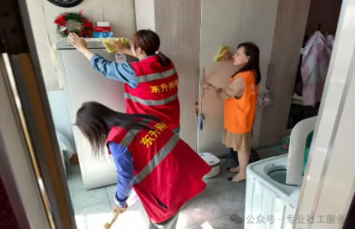 活動中,社工站的同志和社區(qū)干部、網(wǎng)格員,明確分工、大家手持抹布、拖把等工具,來到張大娘的家中,對老人房間內(nèi)的雜物進行分類整理,重點擦拭玻璃、清潔地面、整理物品,確保不留衛(wèi)生死角。經(jīng)過數(shù)小時的辛勤勞動,張大娘家中環(huán)境煥然一新,為老人們創(chuàng)造了更加舒適、整潔的居住環(huán)境。