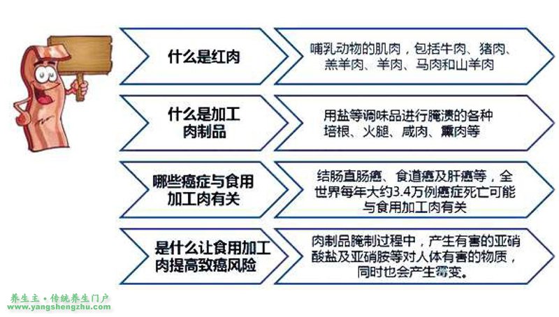 在中國的飲食文化中,咸魚、咸肉、香腸很常見,它們在加工過程中,都可能產(chǎn)生亞硝酸鹽,在體內(nèi)轉(zhuǎn)化為致癌物質(zhì)二甲基亞硝胺,過量食用會導(dǎo)致胃、腸、胰腺等癌變的概率升高,因此從這個角度來看,煙熏肉制品具有一定致癌性。此外,加工肉中的一些物質(zhì)還會導(dǎo)致一些別的癌癥如胰腺癌,會促發(fā)心血管疾病等等。而紅肉則對中國成年人體重超標(biāo)“貢獻(xiàn)良多”,肥胖亦將引發(fā)多種健康風(fēng)險。