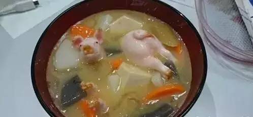 據(jù)報道,這些其實并不是真的豬,而是一個個制作逼真精細、由其他材料制成的仿制品。它們被烹制成所謂的“日式炸豬排”、“什錦湯”等料理,雖說構(gòu)思堪稱奇特,但大多數(shù)網(wǎng)友多反饋自己被“嚇了一跳”,并紛紛表示難以接受。