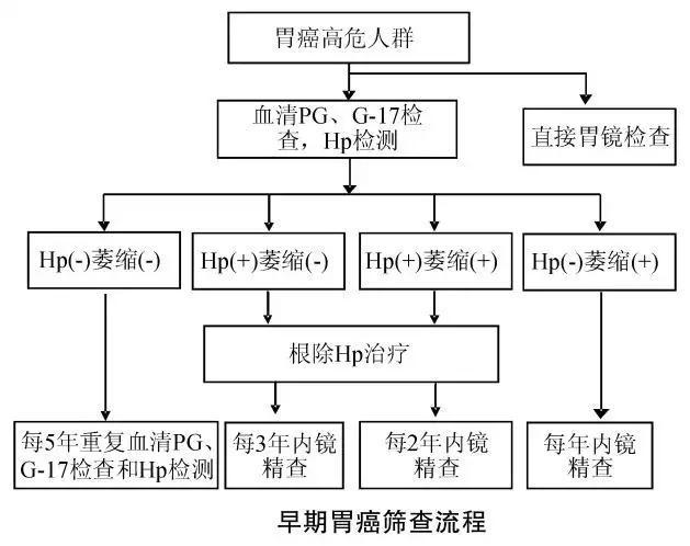 胃癌高危人群應(yīng)該按照下面這個中國抗癌協(xié)會推薦的流程進行胃癌篩查: