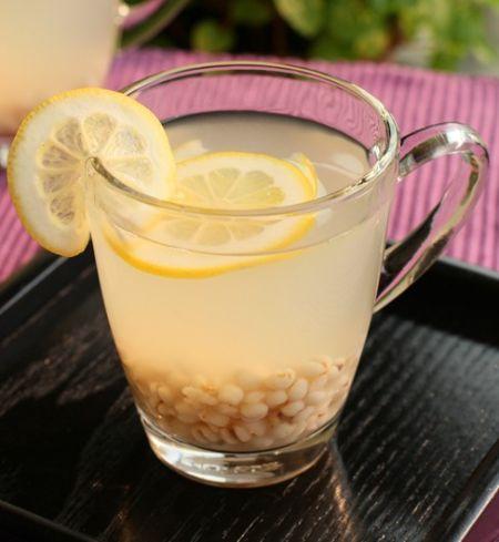 6.關(guān)火后靜置,涼至60度以下時(shí)把薏米水盛入容器,加切片的檸檬,蜂蜜適量拌勻即可。