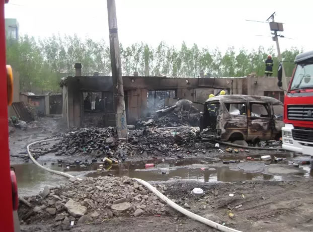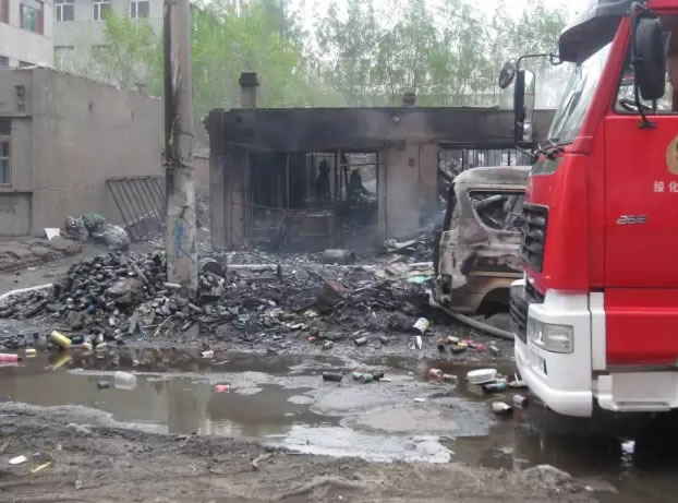 今天上午八道街馨和家園南一廢品收購部發生火災,火情被趕來消防官兵撲滅,未造成人員傷亡。現場一片狼藉,起火原因可能有易燃物品引起,具體起火原因還在調查中。