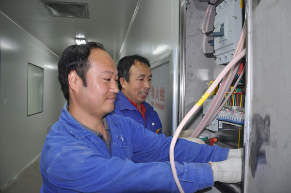 圖為工人正在綠色食品產業(yè)大園區(qū)進行電力配電箱線路安裝。霍永祥 特約記者 車彥旭 攝
